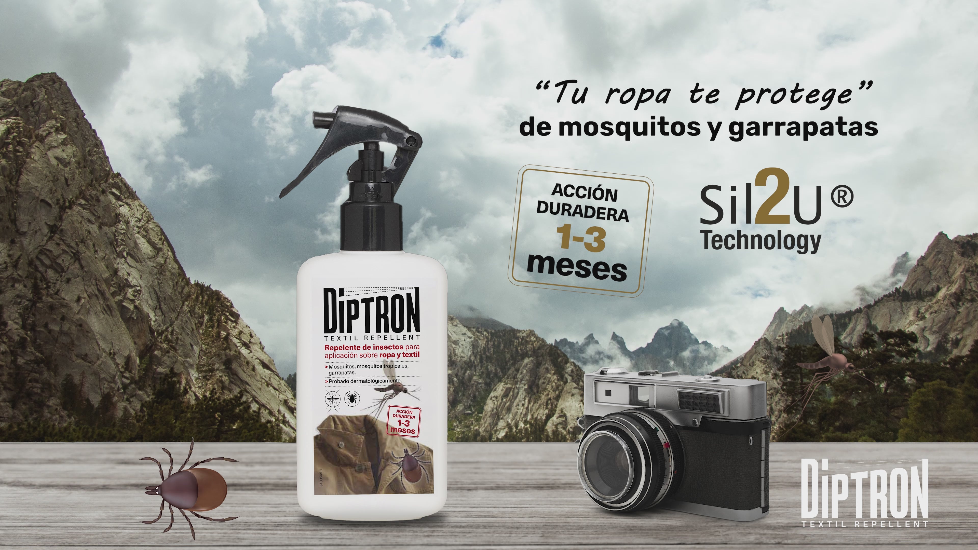 Diptron Textile Quimunsa c'est un insecticide postuler en textile. Fournit un protection très efficace Oui durable face à moustiques, moustiques tropicaux Oui tiques. Il empêche ces parasites de vous piquer et vous offre une sécurité contre les maladies que ces insectes peuvent transmettre. La pulvérisation se fait directement sur les vêtements ou les textiles. Son principe actif Butylacétylaminopropionate est progressivement libéré offrant une longue durée jusqu'à trois mois, selon le nombre de lavages.