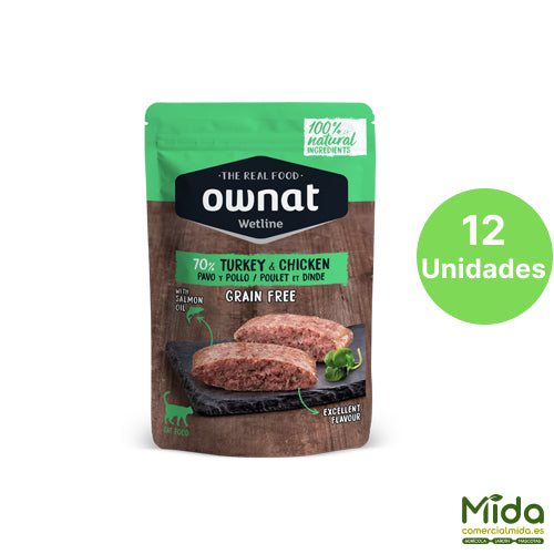 Alimento Húmedo OWNAT Wetline Pouch Turkey & Chicken para Gatos