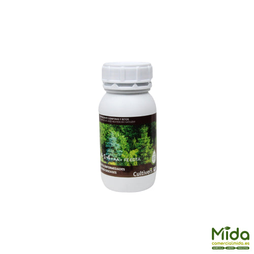 CULTIVERS Abono Coníferas Líquido Ecológico es un fertilizante líquido ecológico especialmente formulado para coníferas y setos como pinos, abetos, cipreses y tuyas. Su solución NPK 4-1-4 con aminoácidos libres aporta una nutrición completa y equilibrada, favoreciendo un crecimiento uniforme y vigoroso. El aporte de hierro, zinc y manganeso quelatados (EDTA) ayuda a mantener un follaje más verde y reduce el amarronamiento asociado a estrés. Actúa como bioestimulante, mejorando la asimilación de nutrientes y la respuesta frente a frío o calor. Es un producto 100% natural, respetuoso con el medio ambiente y seguro en entornos con animales.