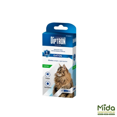 DIPTRON Pipetas Antiparasitarias Para Gatos es una solución antiparasitaria especialmente formulada para gatos, diseñada para ofrecer una protección eficaz y duradera. Su acción elimina rápidamente pulgas y garrapatas presentes en el animal y ayuda a prevenir nuevas infestaciones durante hasta 1 mes.