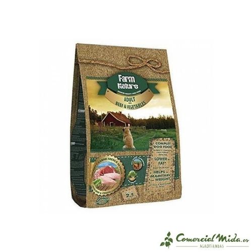 Le format d'aliments secs pour bœuf et légumes de Farm Nature aide le la santé digestive de l'animal est bonne, contribue également à renforcer le système immunitaire du chien et maintenir une peau saine et des cheveux brillants. De plus, la conception du croquettes est surtout adapté aux mâchoires de chiens adultes (cylindre de 14 mm et épaisseur de 9,5 mm). Il est disponible en différents formats.