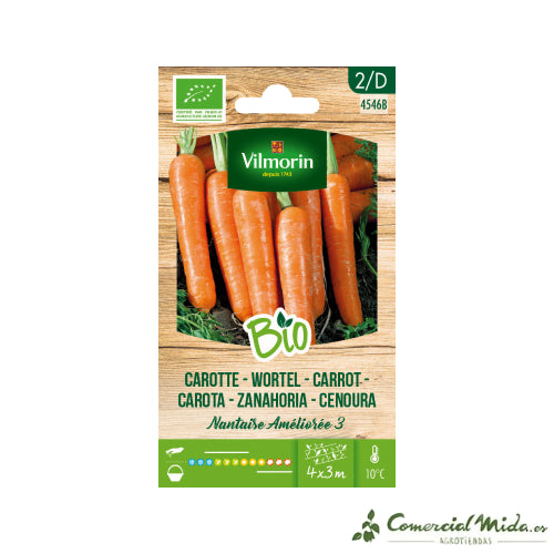 Las mejores semillas de Vilmorin BIO para cultivar Zanahoria Nantaise.