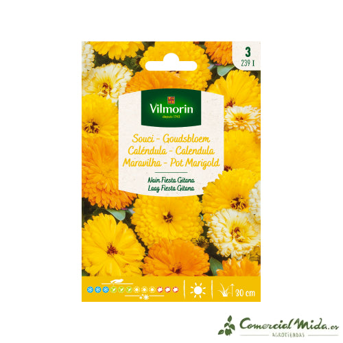 Las mejores semillas de Flores Enanas de Vilmorin para cultivar Caléndula Enana Fiesta Gitana.